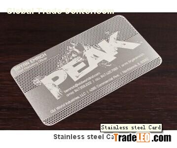 Tech: Etch-Through (See through) Front/Back etch Printing: Price including one screen print spot color (Single color block /text /line) Material: High-grade 304 Stainless steel Spec: 80mm X 50mm Round corner Thickness: 0.5mm (0.1-0.5mm avaiable) http://www.colourmaxprinting.com/