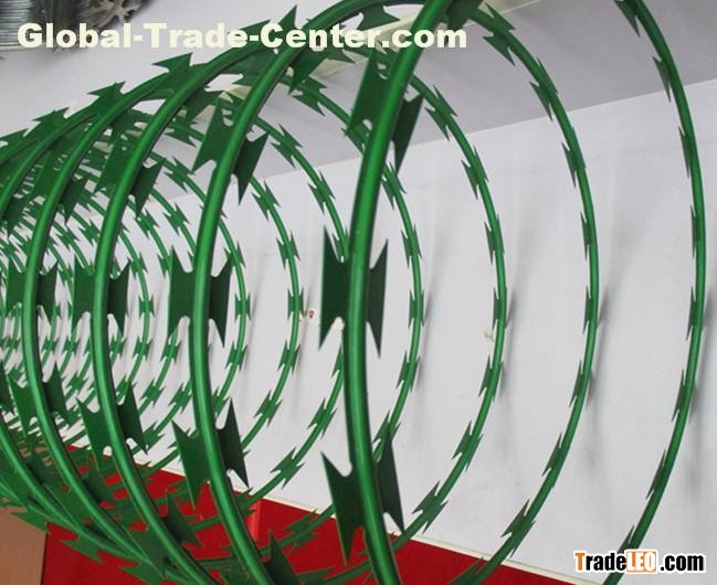 . Razor wire is also named concertina coils or razor type barbed wire. It is a kind of modern security fencing materials with better protection and fencing strength made of hot-dipped galvanized steel sheets or stainless steel sheets. With beautiful and sharp blades and strong core wire, razor wire has the features of secure fencing, easy installation, age resistance and other properties.