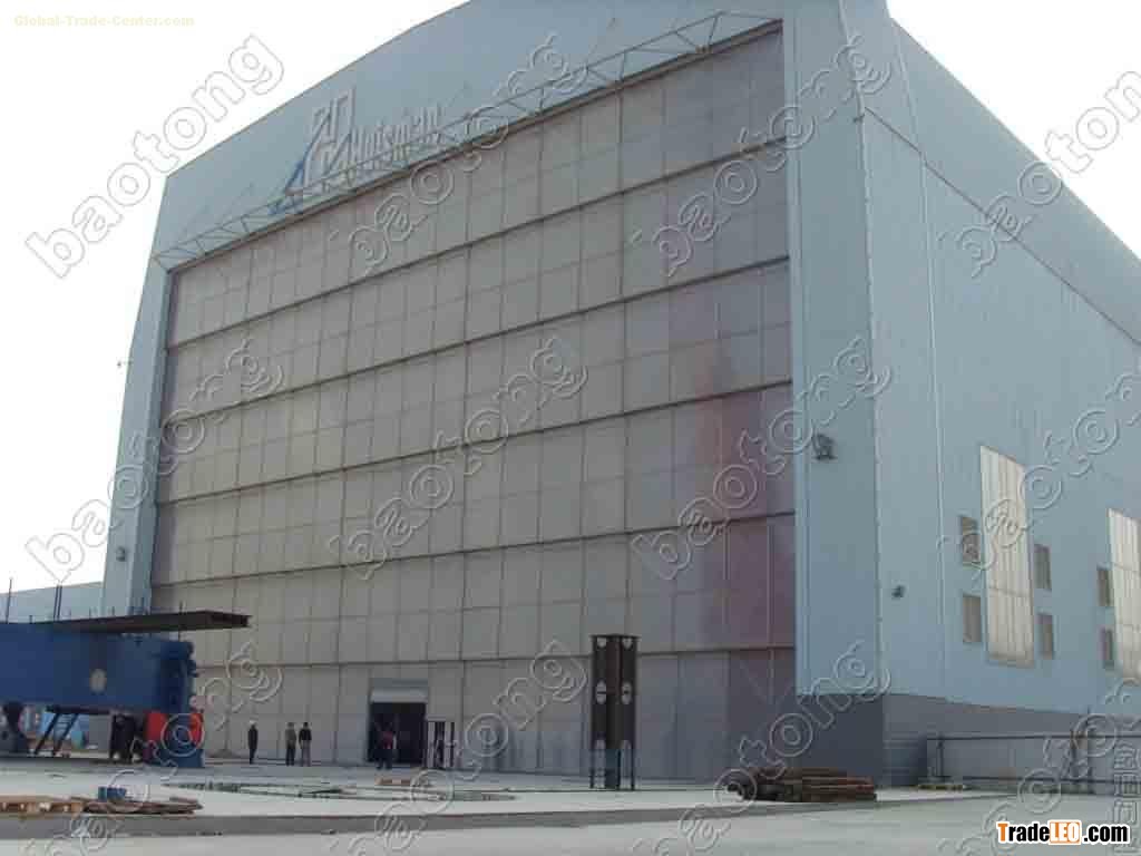 The door is built up by multiple door panels and balanced by counter weight. Suitable for frequent use and bad working condition under which maintenance is not convenient. The door panel is strong and good at withstanding impacting, which guarantee the safety and reliability. Available control method include manual, electrical and remote control.