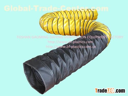 Heat Resistant Combined flexible spiral duct for heating units is made to supply and exhaust hot air to/from confine spaces.