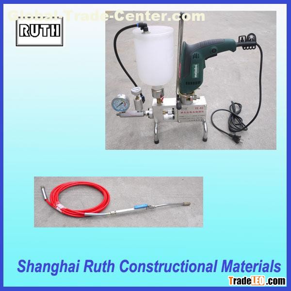 High Pressure Injection Machine is IE-02 is a piston pump with the pressure regulation for classical micro-grouting with one component polyurethane materials or epoxy resin. Construction of the pump enables easy operation and maintenance. Parts of the pump are drive (electric drill), high pressure hose, coupler (4 jaws for connecting the hose to the packer with a ball-head nipple), standby tool, repair kits.