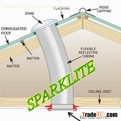 2:Each unit including the following parts: 4mm thick skylight dome, tray, fixing ring, 2meters long flexi- tube, connection ring, aluminum foil tape, diffuser fixing ring, diffuser and screws.