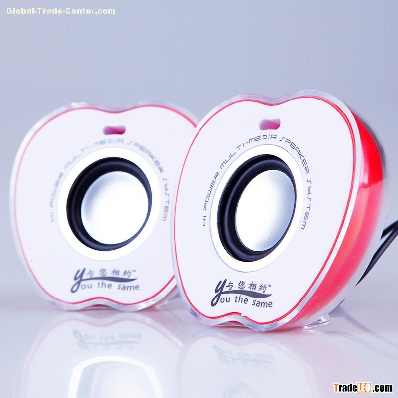 Seven Lights Crystal , USB Computer Speakers, Color LED Mini Speaker, Red Apple Shaped Portable Mini