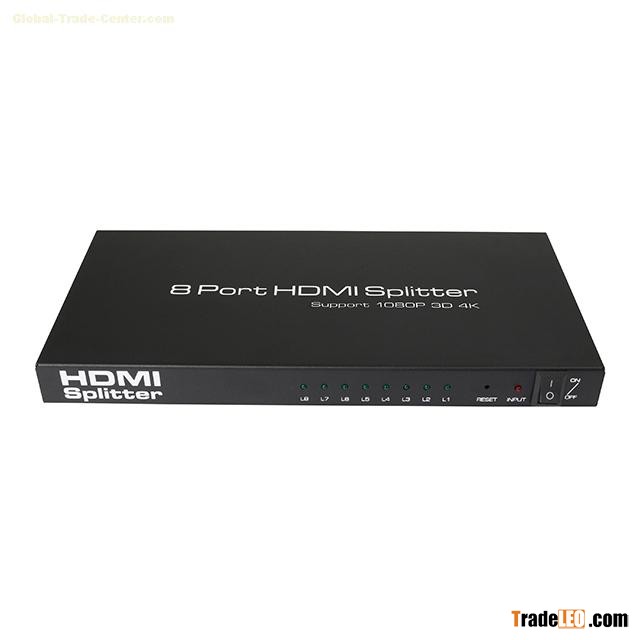 The 1x8 HDMI Splitter that supports Full HD 3D&4K*2K uses a single HDMI source, accessing to multiple HDMI sinks. The Splitter allows one HDMI devices to be split easily to eight HDMI compatible monitors or projectors. The Splitter can also be placed at the end of a long HDMI cable to regenerate the HDMI signal.