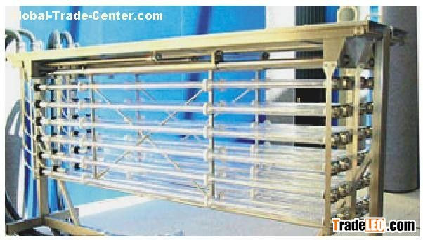 2.Technical Advantages a) Stainless steel is employed in the whole module. High quality UV disinfecting modulating tube with effective working life of 13,000 hours is selected. Quartz socket tube with high light transmissivity of 90% is adopted, which reduces UV losses in a minimum level. b) Every modules and supports can be maintained individually and do not affect other modules' operation during maintenance. These modules are small, energy efficient, easy for installation, convenient for the replacement of UV disinfecting modulating tube and quartz socket tube. c) The UV disinfector is convenient for operation & maintenance and reliable in running. The system will be reminded automatically when the service life of UV disinfecting lamp is out of date.
