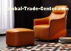 Oem Modern Style Wooden Lounge Chair In Orange Color Leather