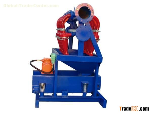 2-12 4” Polyurethane Hydrocyclones Desilter. The feed slurry of solids and liquid is fed through the inlet at a high velocity obtained by sand pump. The vortex finder causes the stream to spiral downward towards the underflow solids discharge. Centrifugal force and inertia causes solids to settle outward toward the hydrocyclone wall, in a downward spiraling stream. The solids separate according to size and weight of the particles. In the density range of solid particles in drilling fluids, size is of far more influence than the variations in density so that basically the biggest particles settle first and fastest. The cone section narrows, inner layers of the downward spinning liquid turn back toward the overflow because of the increasing centrifugal forces near the center.