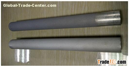 The coating on sprayed high flux tube is formed by spraying guns which melt and spray the compound of Ni-wrapped Al powder and pore-forming materials. This can only process the outside surface of high flux tube, which has only 50% of heat transfer efficiency of sintered high flux tube, 10% service life of sintered high flux tube. But it is easy to manufacture and much cheaper.