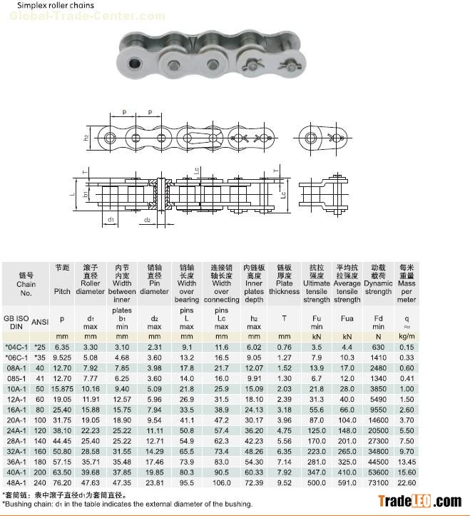 Simplex roller chain