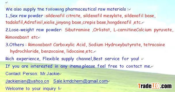 Shangqiu Kangmeida Bio-technology Co.,Ltd,is established in 2008. As a professional manufacturer and supplier,we are specilized in producing and supplying antibiotics, sexual pharmaceutical raw materials, loss weight raw materials, chemical raw material, and more from China.
