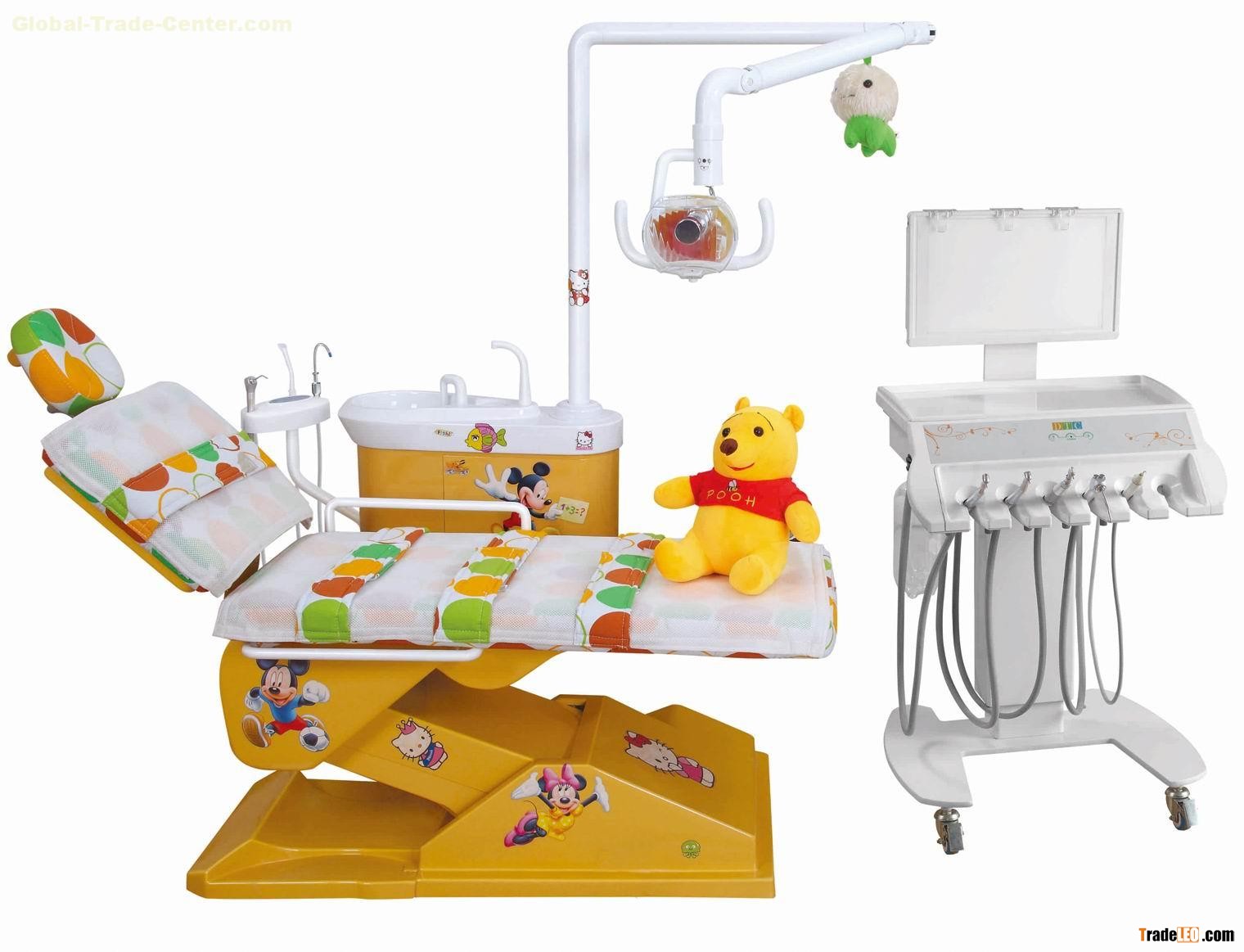 Dental chair is made of ABS plastic shell never deformed fade, nontoxic, fully computerized automatic control; it has a stable structure, beautiful appearance, convenient operation, high reliability, is a modern dental clinic ideal upgrade product. Dental chair using low Silent DC motor drives, full computer control, master control and foot switch with two control points. Control switch is designed to meet people's thinking and behavior, greatly improve the safety index of the machine to facilitate physicians accurate and fast work. Seat and backrest with the overall seamless bubble technology. Treatment machine parts, using the new long-life lamp arm; novel oral cold light; overall ceramic gargle glenoid basin; air-lock balance arm to the local Tim-enriched; high and low cell phone using an independent water supply system that can effectively extend the phone's life. Phone powerful, simple structure, convenient operation, cooling water increases the anti-suction device, preventing cross-infection of patients; using a (cold and hot) type three guns, two (strong and weak) aspirator device configuration.