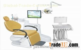 Dental chair is made of ABS plastic shell never deformed fade, nontoxic, fully computerized automatic control; it has a stable structure, beautiful appearance, convenient operation, high reliability, is a modern dental clinic ideal upgrade product. Dental chair using low Silent DC motor drives, full computer control, master control and foot switch with two control points. Control switch is designed to meet people's thinking and behavior, greatly improve the safety index of the machine to facilitate physicians accurate and fast work. Seat and backrest with the overall seamless bubble technology. Treatment machine parts, using the new long-life lamp arm; novel oral cold light; overall ceramic gargle glenoid basin; air-lock balance arm to the local Tim-enriched; high and low cell phone using an independent water supply system that can effectively extend the phone's life. Phone powerful, simple structure, convenient operation, cooling water increases the anti-suction device, preventing cross-infection of patients; using a (cold and hot) type three guns, two (strong and weak) aspirator device configuration.