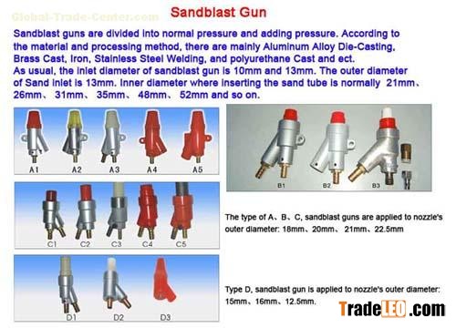 Sandblast GunThey are divided into normal pressure and adding pressure. According to the material and processing method, there are mainly Aluminum Alloy Die-Casting, Brass Cast, Iron, Stainless Steel Welding, and polyurethane Cast and etc.