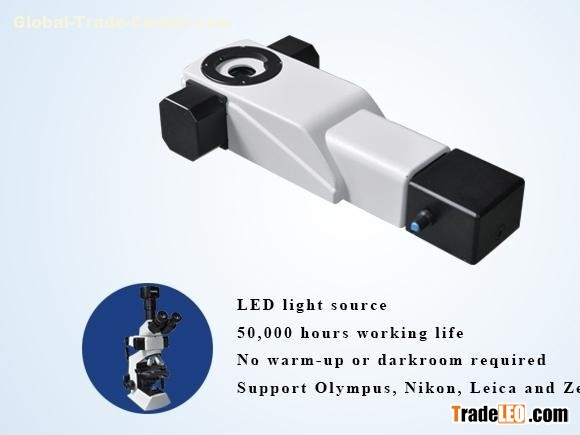 LED fluorescence illuminator is designed as epi-fluorescence illumination for conventional infinity upright microscope upgrade to fluorescence functional. The illuminator MF-BG-LED gets blue and green two excitation groups in one unit, different filter groups can be selected by moving the slider to do fluorescent observation or switch to bright field observation. It is a excellent fluorescence attachment for microscope upgrading to LED epi-fluorescence microscope with a pretty high cost-effective.