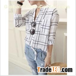 Women's stand collar check pattern printed shirt