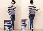 Popular Cotton Ladies Fine Knit Sweaters , Long Sleeve Pullover with Two-tone Irregular Stripes