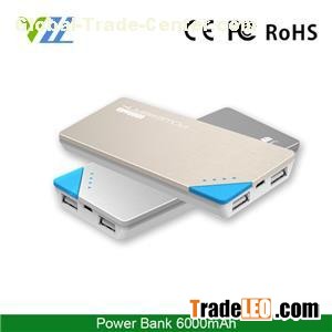 Shenzhen Yizhaolong Technology Co.,Ltd is one of the leading high quality unique design power bank 6000mah dual usb manufacturers China equipped with professional factory,Website:http://www.amblefree.com, welcome to import newest high-quality CE certification high quality unique design power bank 6000mah dual usb from us.YS-P6 power bank 6000mah product overview:Private mold power bank 6000mah (YS-P6) with a special triangle button design on the top,Adopt real capacity polymer battery, small size and easy to take, also with 4 LED indicators to the Power status so that you can charge your 6000mah power bank in time!Technical specifications:Item No.YS-P6Product namePower bankCapacity6000mahBattery typeRechargeable Lithium polymer batteryInput/outputInput : 5V 1.0A / Output : 5V 1A/ 2.1ASize130*60*14mmWeight154gPortableYESHousing materialAluminum alloySocket typeMicro usbCycle lifeMore than 500 timesBody colorBlack / gold/ silverCertificationCE FCC ROHSprotectionOvercharging and over discharging, over-current and over voltage protection, short circuit and over-load protectionWarranty12 monthsPackingPower bank *1 usb cable*1 user manula*1Hot tags:6000mah portable power bank, latest power bank, power bank 6000mah, China, manufacturers, suppliers, factory, company, wholesale, high-quality