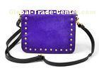 Ladies shoulder bag with long detachable shoulder strap and high quality crystal rivets on the edges, made in genuine horse hair and top grain cowhide leather, many colors for your choice