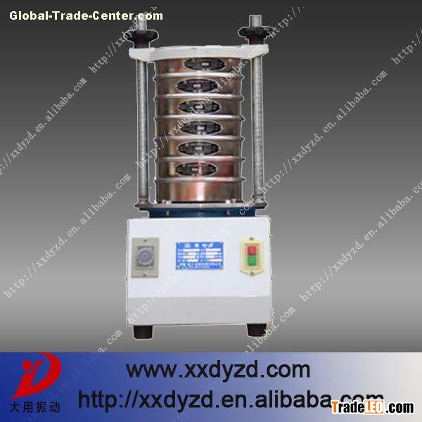 Laboratory vibrating screen with new vertical vibration motor as vibration source,vertical vibration motor on both ends with partial heart heavy hammer.Generating a horizontal , vertical , inclined three-dimensional motion.Vibration force is passed through the screen frame chassis standard sieve box and materials to achieve excellent classification .