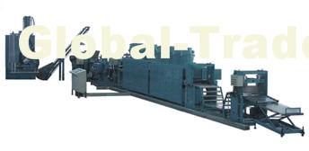It is comprised of the dispersion mixer, open mill , the bucket lifter, the double conical-screw extruder sheeter, the coating calender, the air-cooled conveyor, the pulling slitter and the pulling cross-cutter, and usable for continuous operation of resin and asphalt slab coating.