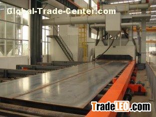 This Steel Plate Shot Blasting Production Line contains shot de-dusting chamber, cleaning chamber, painting system, dry system, dust removing unit which are linked by rollers conveyors.