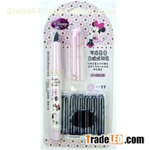 Plastic Fountain Pen With Ink Cartridge Item no.: TPF1025. Plastic fountain pen 6pcs ink cartridges composed one set. Cartoon fancy design is good choice for students. Stainless steel tip and advanced ink free system make sure the smoothly writing.