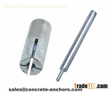 The drop-in anchor is also called concrete drop-in anchor, concrete drop-in, mini drop-in. It consists of two parts: a zinc plated steel tubular expansion shield and a solid, cone-shaped expander plug in tubular expansion shield. The expander plug is hardened and tempered to prevent galling. On the bottom of expansion shield, there are four equally placed slots. The top of the anchor shield is smooth and the bottom part is sometimes knurled. The use of the bottom lip is to allow maximum depth and holding power. Drop-in anchors are made of zinc plated steel, 304 or 316 stainless steel. The anchor is used in solid concrete only. When the plug is pushed into the bottom of the anchor with a setting tool , the anchor will expand in the hole and it's kept by friction.