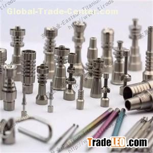 Titanium Nails and accessories are a crucial part of the concentrate (dabbing) process. We have a great selection of accessories, from adjustable nails to domeless nails, this is the place to be! Nails can be made of titanium and there is a multitude of sizes.· Top CNC machines.· GR2 titanium, Material certificate provided.· OEM, ODM welcomed.· Anodizing and PVD coat acceped.· Engraving and laser print accepted.AVAILABLE GRADES:Grade 2 AVAILABLE SIZE:10mm 14mm 18mm male and femaleDISH DIA 10 - 22mmCOLORNatural titanium color,yellow,Gold,,Blue,Red,Pink,Rainbow,Purple,etc.WEIGHT:0.009- 0.080/pc SURFACE:PolishedAPPLICATIonFor smokingFor more information or enquirys, please forward your requirements to sales@bjdsti.com . Why Titanium1. LightnessEST Titanium is 4.51g/cm3 in density, higher than aluminum , lower than steel, copper and nickel, who se intensity tops in all metals. In other words, its weight nearly aluminum at the same volume. However, its intensity is stronger than aluminum or even stronger than steel. 2. Free from rust acids and basesEST Titanium is kept rust-proof in deep sea and stable in all kinds of medias , like hydrochloric acid, nitric acid and even mixed acid.The reason is titanium generates a high density and hard oxide layer, which protects it from corrosion. 3. Healthy Environment and Human-friendlyEST As the titanium is non-toxic and perfect compatible with the human bod and blood, it is widely adopted in the medical for making human apparatus, Besides, Titanium belongs to non-magnetism metal, it will not be magnetized. 4. Heat