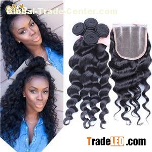 6A Grade Peruvian Virgin Hair With Closure 3 Hair Bundles With Lace Closures 8-30''''