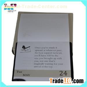 Tear off calendar printingProduct detail as below:Product type (Item): tear off calendar printingPrinting type: offset printingPages: customizedInner: 70g/80g/90g/100g/105g/200g matt art paper (customized)Surface finish: gloss lamination for one side coverBinding: softcover binding/perfect bindingColor: CMYK / pantoneSize: A3/A4/A5 or customMOQ: 1000pcsQC: 100% inspection cargos before deliveryDelivery time: 6-10 days depends on the quantityPrice: $0.5-$1.5Packing details: Export double corrugated carton .Eco friendly pallet and waterproof plastic film.The news about printing:October 8, 2014, at the Frankfurt Book Fair, China Book import and Export (Group) Corporation and Ingram Content Group's Lightning resources China signed a global on-demand printing of books agreement by both sides to create a joint global demand Chinese books print network to provide for the Chinese press digital processing, digital content copyright protection, promotion and marketing of a full range of local demand printing solutions. Fig company for on-demand printing resources, on-demand printing Ingram North America, Europe, South America, Australia, 12 on-demand printing plants, and to achieve more than 180 countries worldwide marketing network through Ingram 24-hour direct supply.