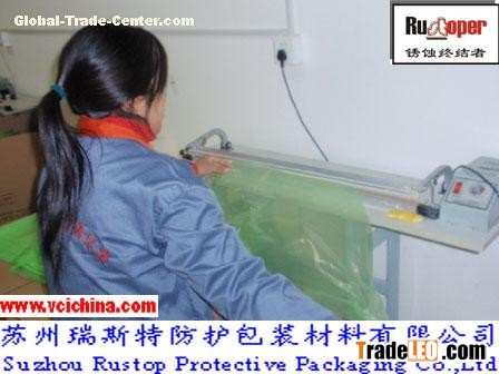 Rustoper (corrosion terminator)VCI plastic bag is made by high-quality VCI films as basic materials. VCI plastic bag is the new generation of creative hi-tech products based on the combination of the high polymer material and VCI antirust technology. After the bag is used to pack and seal the articles for antirust, VCI contained in the bag begins to sublimate and volatilize the antirust gas factors which diffuse and penetrate into the surfaces of the articles for antirust and adhere on them to form a compact protection bag with the thickness of monomolecular to avoid the surfaces of the articles for antirust in contact with all factors inducing corrosion, thus the corrosion is effectively prevented.