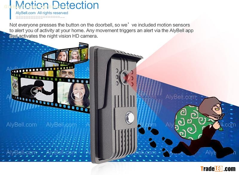 AlyBell WiFi Wireless Vandalproof Waterproof IP55 P2P Video Intercom Door Bell for Android/iOS Smart