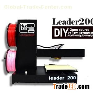 High quality and good price build size 210*210*280mm 3d printer machine made in chinaLEADRE200 3d printer is a metal 3d printing machine.The 3d printer machine with double nozzle and hot bed,Website:http://www.languagess.com,It is the update version of leader150 3d printer,include all of advantage about leader 150 3d printing machine.Double nozzle make the Leader 200 3d printer can print two different kinds of filament .support manytype of filament .for example,PVA,ABS,PLA,Wood,Flexible,conductive,nylon,etc.In the workingtime,one of nozzle use the filament that can be dissolve by water to print the carriage.That make the model's surface more smooth.XYZ axis position accurately, ensures the printing edge more neatly.Operating system compatible with Windows, Linux, Mac.Stable and reliable, without worrying the trouble some debugging.extruder temperature and hot bed temperature are freely adjustable during printing. SD card design support totally off-line print, no computer needed while printing.Heated bed keeps a certain temperature to prevent warping, and cooling fan speeds up solidification of the extruded filament.1. One year warranty:provide high-class after service for you.2. OEM/ODM service:The product complete machine or accessories all can be custom-made. we have professional engineer design and debugging .3. Strict quality control:To ensure quality ,our company are strictly review qualified supplier sourcing,All raw material can warehouse after inspection strictly.defective rate within 0.02%.More information , Welcome to inquiry !!!