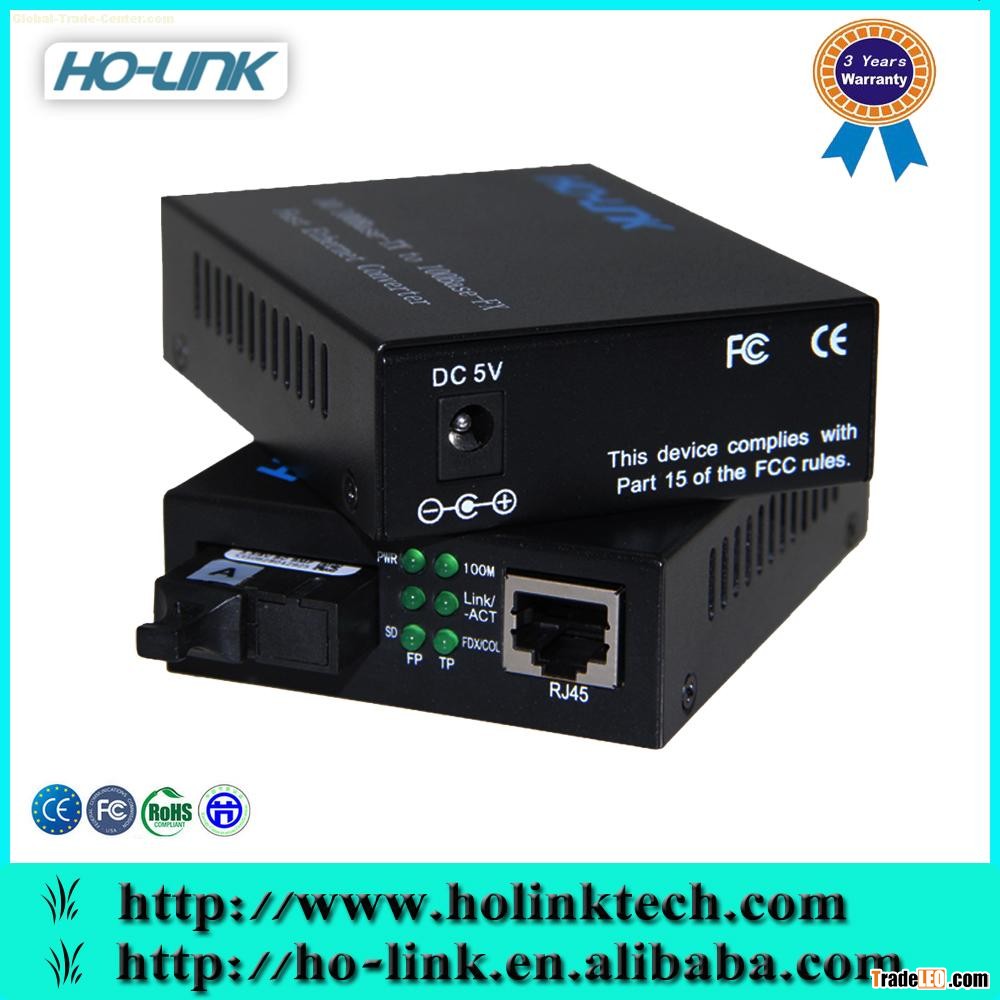 H series Ethernet media converter can interconvert electrical signals of 10base-T and 100base–TX twisted pairs with optical signals of 100base-FX. It extends the network transmission distance from 100m to 100km via fiber optical cable. It enables the data to transmit in two different mediums of electrical and optical networks either by the technology of data link L2 store-and-forward, or by the one of PHY L1 cut-through. It supports transmission in multi -mode dual fiber, single-mode dual fiber.
