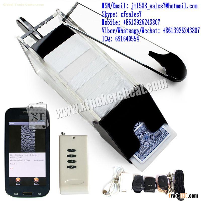 This is a new technology of baccarat dealing shoe, why we say that is a new technology, as now we program the baccarat dealing shoe system to work with Samsung poker analyzer, its advantage is that the reporting speed will be much faster. While how can we prove it? As our Samsung poker analyzer is the newest model poker analyzer, it is able to analyze and read the cards very fast, so now we make this AKK40 ( K4 ) Samsung poker analyzer to work with this baccarat dealing shoe is very perfect.