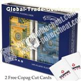 Copag marked cards are considered by knowledgeable players of any card game to be the finest in the world. Made from 100% PVC plastic, Copag marked cards sets are generally expected to last from 20 to 50 times longer than regular paper cards. We personally feel they are just as good as Kem cards.