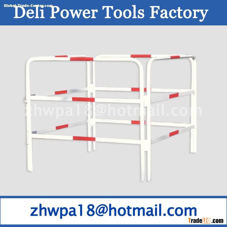 The  Manhole Guard rail is designed as a simple onepiece construction that offers easy, no-tools assembly. Guardrail locks open and two hooking chains provide protected entry and exit. For added safety, the rail accommodates signs,flags, or lights. For convenience, it can be used with a guard rail tent, umbrellas or the Allegro winch.