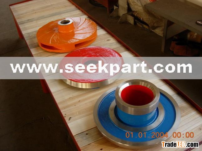 We offer complete range of replacement parts like wet end parts, bearing housings, frames and pump assemblies for OEM pumps sizes 1.5/1 to 14/12. Materials offered: High Chrome Iron, Natural rubber, Urethane and others.