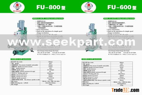 The tool machine is a dual-purpose drilling&milling machine, model FU600. The spindleis supported with precision roller bearings. High accuracy gear after quenching.