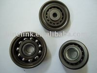 This is nonstandard bearing wheel, used in many kinds of coveyors, full ball type, the inner race is split to 2 part and are hold together by the center bushing.