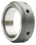 Specifications:Precision locknuts for bearings and precision machine components.Material - AISI 4140 SCM 440Hardness - HRC 28-32Precision - ISO 4HThe series TMF locknut is designed with three locking inserts(pegs)that intersect the bore with an angle of 30o. This series is produced with tolerance class ISO 4H ground threads and is available in sizes 25 to 200 mm bore.