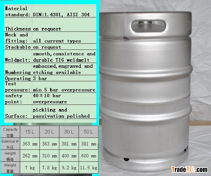 China's oldestbeer keg manufacturer,products from 15L,20L,30L, 50L DIN or EURO keg, US 1/6 ,1/2 barrel,safety bursting point,stackable or not,high quality with reasonable price;
