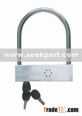 1.Insert the key and open the lock,press down the red button on the lockpole steady side,when you hear the sound “DU”, which means it is coming into the alarm situation, press the button again , remove alarm situation.When the lock is coming into alarm situation, after seconds when you viberate the lock or vehicle again , it will give an alarm and keep alarm with serial movement or vibration. Each alarm will last 10 seconds.