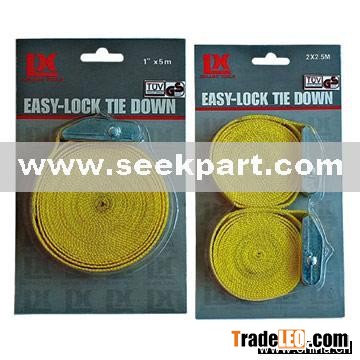 Description:Specifications:1) Max. pull: 500kg tie-down capacity, material PP belt2) XL-LB136: 2pc 25mm x 2.5m easy-lock tie down, zincous alloy buckle3) XL-LB137: 25mm x 5m easy-lock tie down, zincous alloy buckle4) Suitable packing: slide card5) Optional colors: orange, green, red, yellow, black6) Ideal for cars, trucks, SUVs, boats and trailers