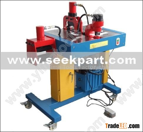 | Detailed Description DEscriptIONS: 1.function: cutting, punching, horizontal bending, erect bending, conduit bending 2. workbench size: 800mmx 600mm x 770mm (LXWXH) 3. required input power: single phase 220V, 50HZ 4. control voltage: 12V 5. reted working oil pressure: 700kgf/cm2 6. cutting capacity: Cu/A1120mmx12mm 7. punching output: 27tons, 30tons. 8. distance from hole to busbar edge: 65mm, 70mm 9. cutting capacity-copper: dia.14mm-21mm, thickness 10mm dia. 8mm-11mm, thickness 10mm dia. less than 8mm, thickness 8mm. |