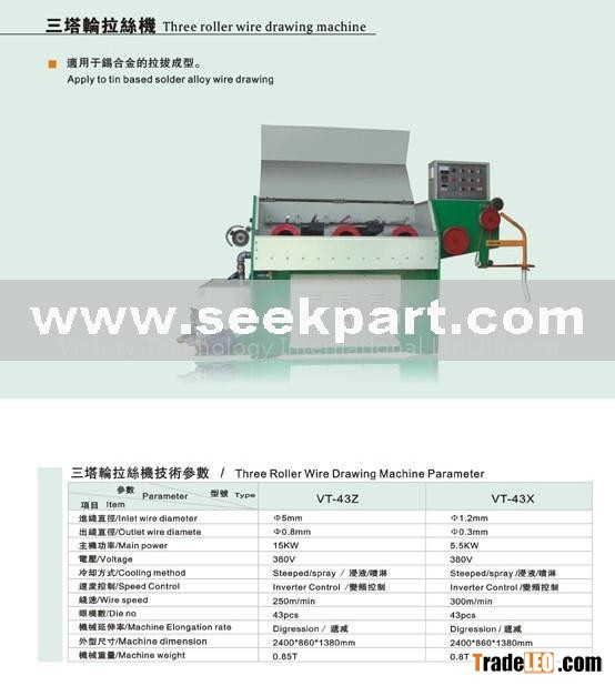 three roller solder wire drawing machine is apply to all kinds of solder wire lead or lead free drawing directly from 5mm to 0.3mm