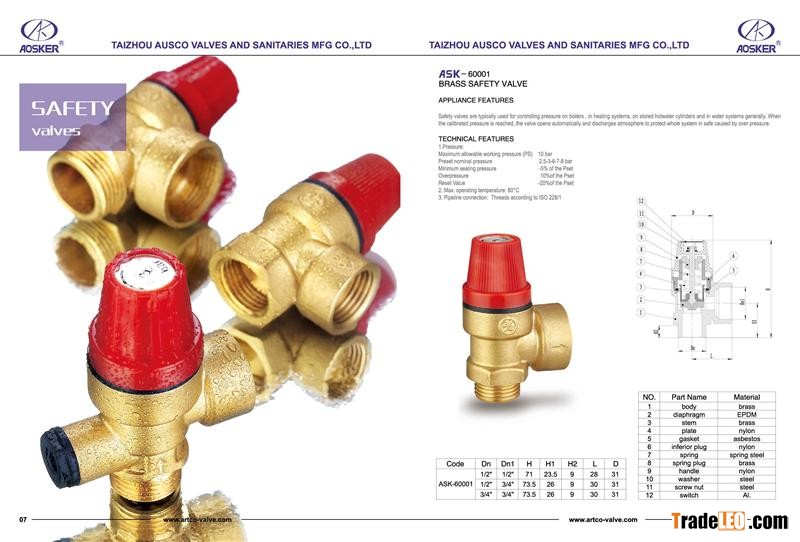 satety vlaves are typically used for controlling pressure on boilers,in heating system,on stored hotwater cylinders and in water generally.When the calibrated pressure is reached,the valves opens automatically and discharges atmosphere to protect whole system in sate caused by over pressure