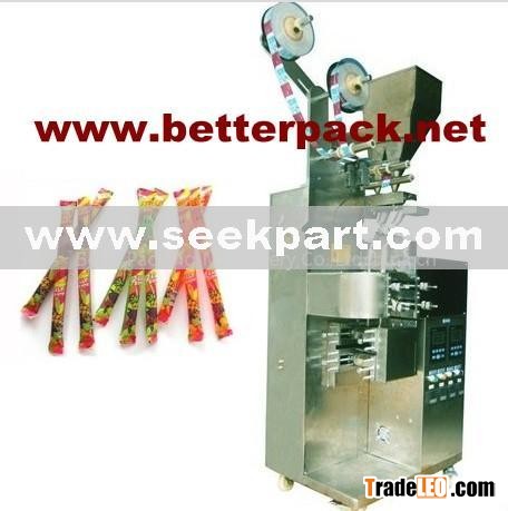 The machine can be used for the double lane package of liquid such as ice pop, jelly strip, honey ,etc.