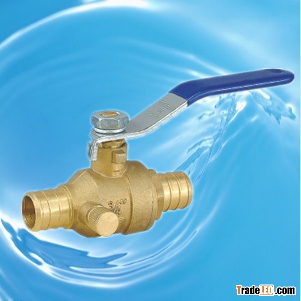 PEX lead free inch brass ball valve with drain 1) Sizes: 1/2" -1" 2) Nominal pressure: 100psi 3) Working mediums: gas, water, oil 4) PEX inch brass valve material: HPb59-1 5) Handle material: Q235 6) PEX inch brass valve Seal material: PTFE, NBR