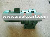 Series B, Series X Cycloidal gear speed reducer is a new kind of transmission machinery which adopts K-H-V small tooth number difference planetary gearing technique and engages cycloidal gear. It is widely applied in drive devices and speed reducers among the industries of textile printing and dyeing, light industry, food, mining, metallurgical, petrochemical, transportation, engineering, etc. Our cycloidal planetary gear speed reducer has been awarded as "Excellent Product" of Ministry of Machine Building and Jiangsu Province for its high quality, reliable performance, complete specifications and reasonable price. The gearing system of the product can be divided into three parts: input, speed reducing and output. There is a dual-eccentric bushing with 180° dislocation on the input shaft and two roller bearings on the eccentric bushing which forms an H-shape. The center holes of two cycloidal gears form the raceway of tumbler bearings on eccentric bushing. Cycloidal gears engage with a circle of lantern gears so that forms a small tooth number difference inner gearing reducing structure. (In order to reduce friction, there are gear sleeves on the gear for speed reducers with low speed ratio.)